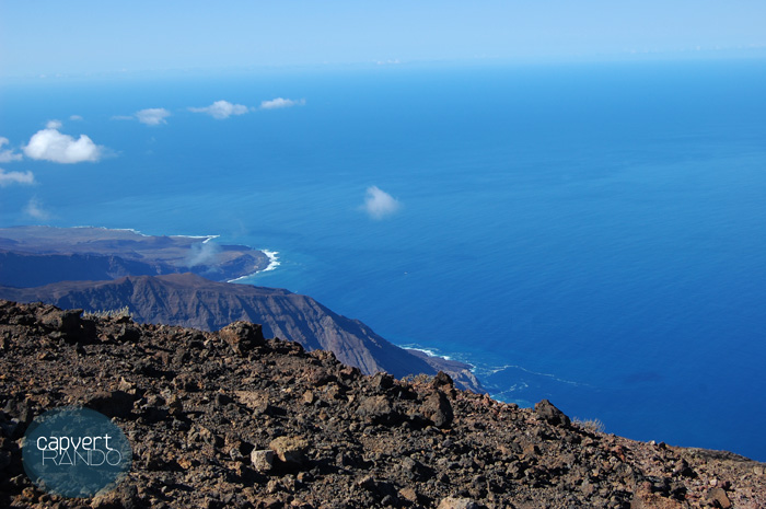 After a nice cup of tea at dawn, we start to climb the highest mountain of the island: Tope de Coroa (literally: the top of the crown), which peaks at 1979 metres (6493 feet). The sight of this moonscape and striking colours of the region will be engraved in our memories for a long time, so will the souvenir of the delightful dinner our host family cooked for us.