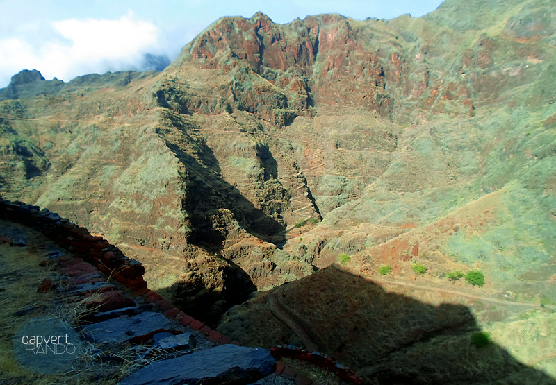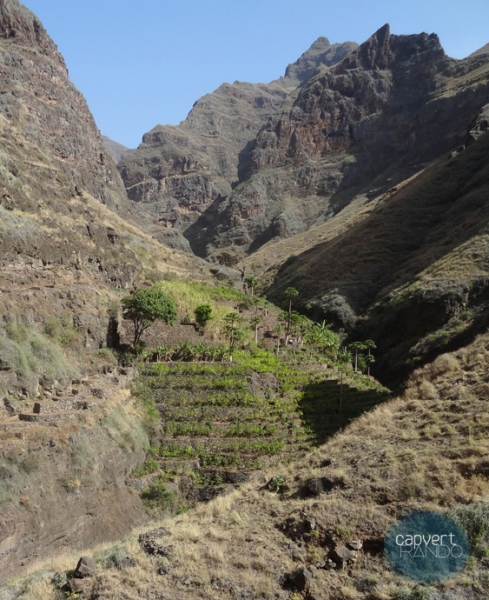 We start our wanderings through two beautiful valleys. Learning some words of Cape Verdean creole allows us to exchange more than smiles with the local farmers we encounter. Once we've reached the village, we meet our host family for tonight, and enjoy a delicious homemade dinner. Simple, human, typically Cape Verdean.
